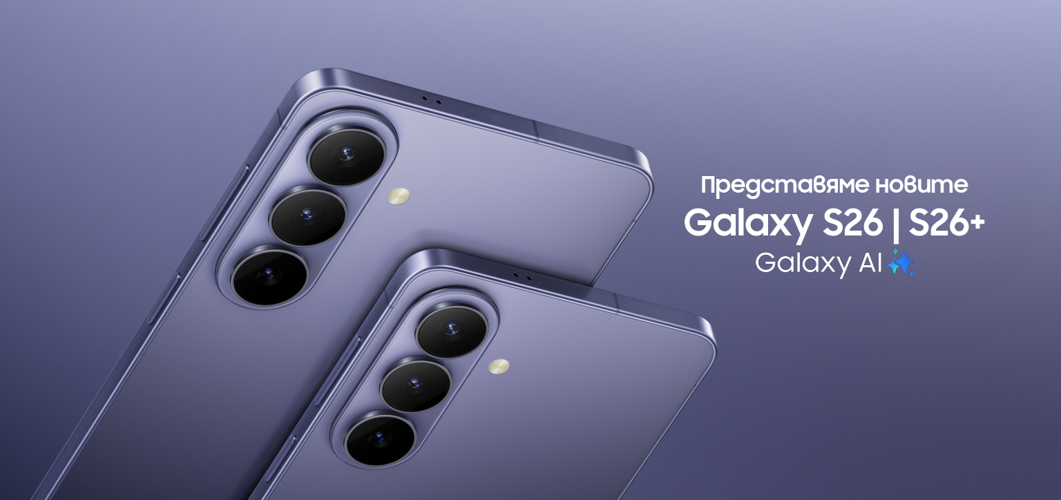Запознай се с Galaxy S26 и S26+, нашите мощни AI телефони, обединени от идентичен дизайн на ъглите, който преминава през всеки модел и се усеща перфектно във всяка ръка.