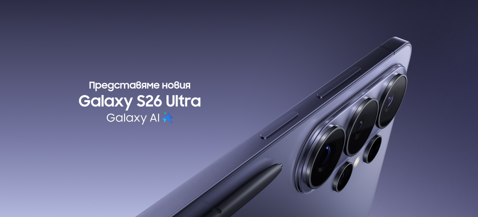 Запознай се с Galaxy S26 Ultra, AI телефон, включващ персонализиран процесор, който трансформира твоето изживяване, нашата най-ярка система от камери и първият в света вграден Privacy Display на мобилно устройство — всичко това в твоята ръка, за да подобриш ежедневието си.