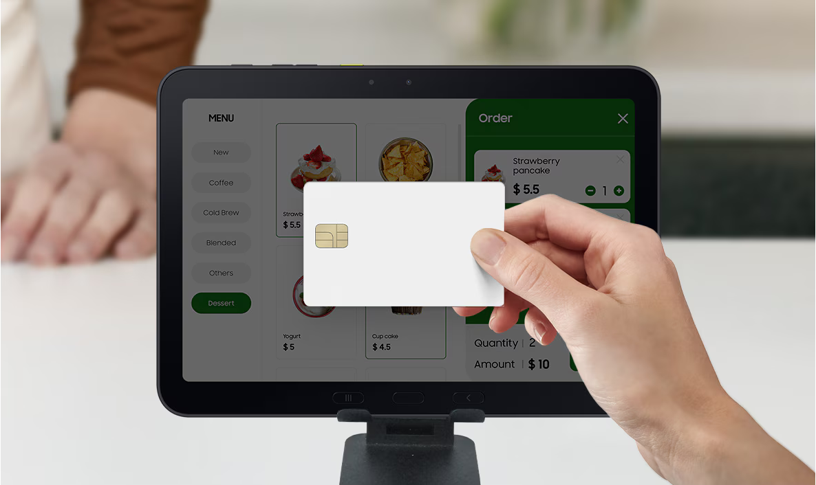 NFC маркирането отпред позволява прости плащания с докосване директно на екрана на Galaxy Tab Active5 Pro, което улеснява транзакциите. С функционалността Front Tagging NFC се елиминира нуждата от допълнителни аксесоари, което помага на бизнеса да работи ефективно.
