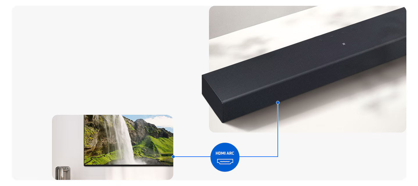 С HDMI ARC порта на твоя саундбар можеш да го свържеш към външно устройство и да се наслаждаваш на богато, динамично аудио без загуба на качество.