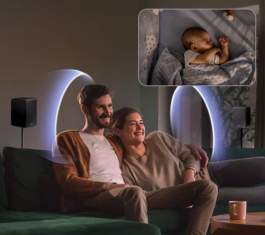 Surround yourself in ultimate 3D sound. With Dolby Atmos wirelessly integrated into your soundbar, you can hear every distinct beat and pulse above and around you, just like the movies.