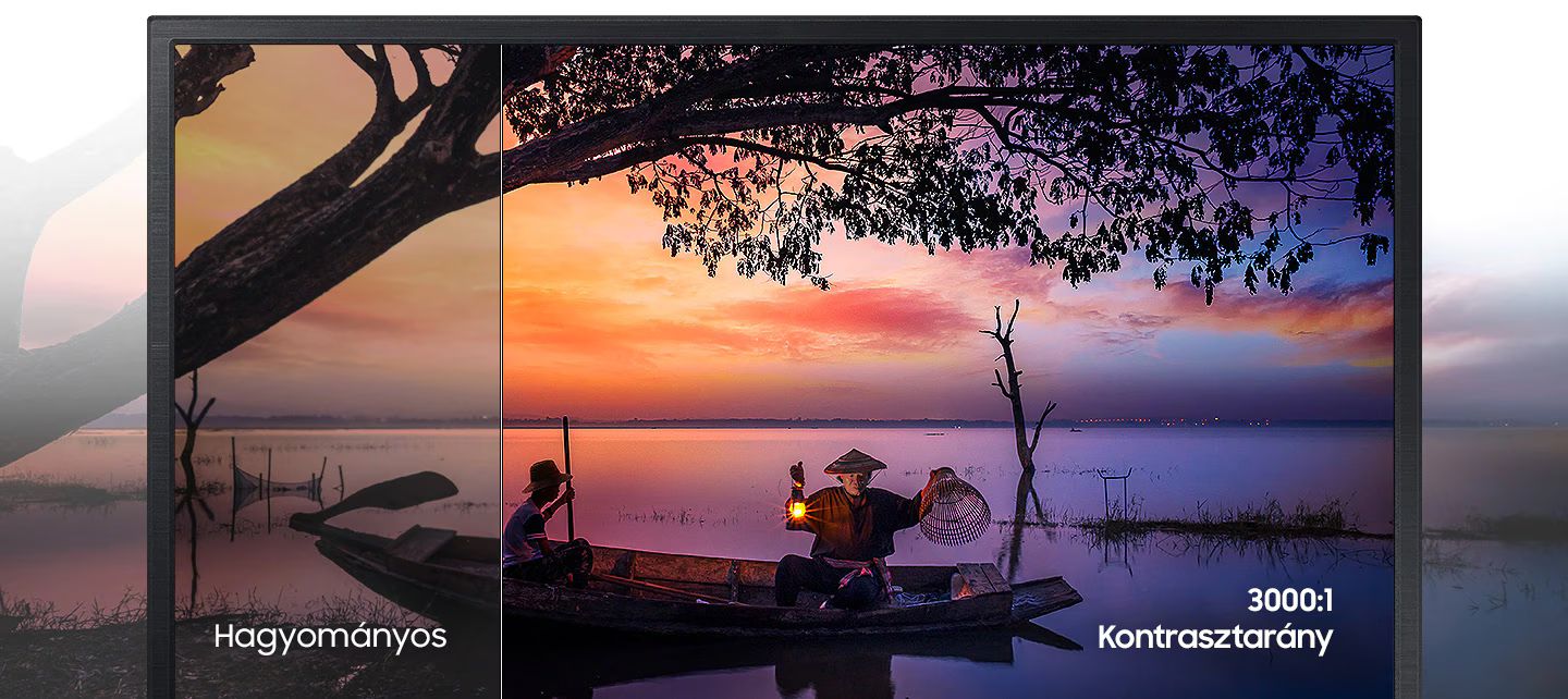 Всяка сцена има невероятен контраст. Иновативната технология VA Panel на Samsung осигурява изключително контрастно съотношение 3000:1 с по-дълбоко черно и по-ярко бяло. Минимално изтичане на светлина от ъгъл до ъгъл, така че дори много тъмни или ярки изображения са кристално ясни на екрана.