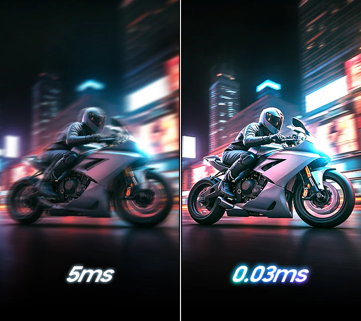 Издигни най-интензивните си гейминг сесии на ново ниво. OLED технологията осигурява почти мигновено време за реакция от 0.03ms GTG, което ти позволява да печелиш в динамични игри с кристално ясни и изключително прецизни визуализации.