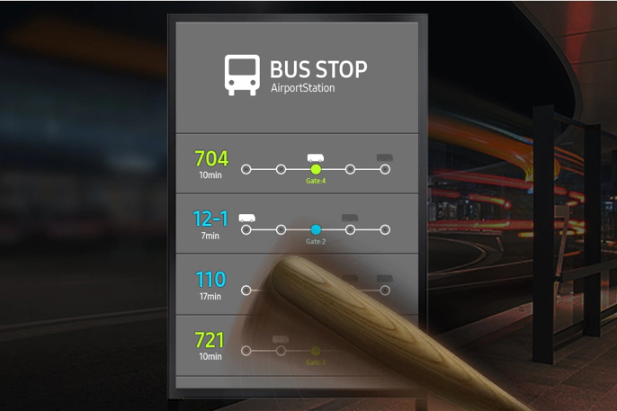 Samsung’s OHN-D Series dual-sided outdoor displays are designed to endure harsh outdoor conditions and double the reach of your message with exceptional clarity around the clock. Perfect for bus stops and roadside billboards with high brightness on both sides and a built-in dimming sensor, your content will shine day or night. Plus, you can easily manage your signage remotely thanks to an embedded media player.