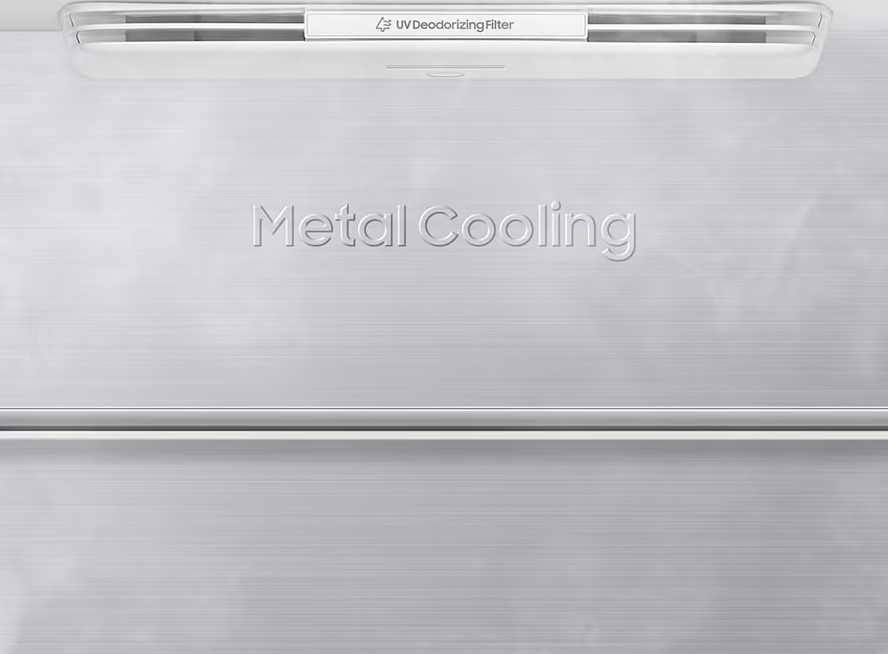 По-ефективно охлаждане за дълготрайна свежест Metal Duct За поддържането на оптимална температура спомага металната плоча Metal Cooling на задната стена на хладилната камера, която спомага за поддържане на температурата в хладилника. Освен това изглежда красиво и се почиства лесно с кърпа. | ![]() |