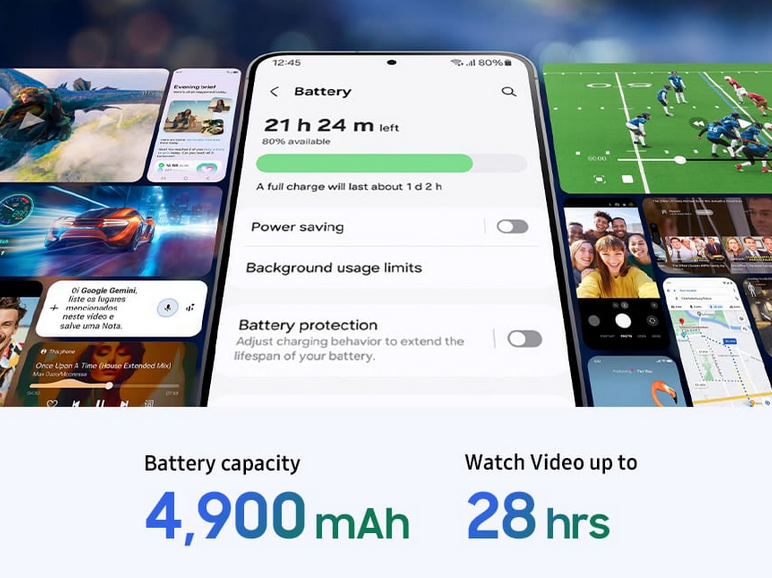 Мощна батерия, за да правиш повече Galaxy S25 FE е с батерия от 4 900 mAh за надеждна работа през целия ден. С бързо кабелно зареждане достигаш до 65% само за 30 минути, за да се впуснеш в действието за нула време. | ![]() |