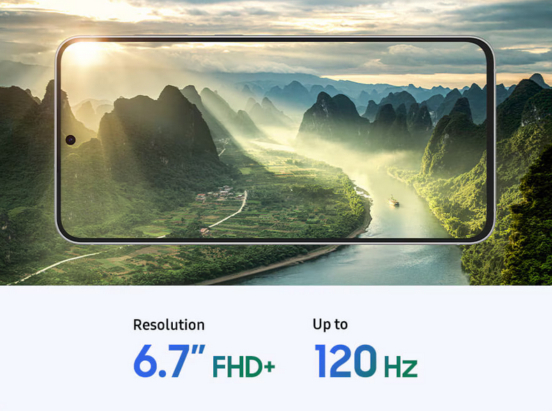 Завладяващ дисплей за по-широки хоризонти 6.7-инчовият FHD+ дисплей на Galaxy S25 FE предлага завладяващо визуално изживяване с честота на опресняване до 120 Hz. С минимизирана рамка и по-ярък екран с Vision Booster, съдържанието ти изглежда живо, ясно и впечатляващо. | ![]() |