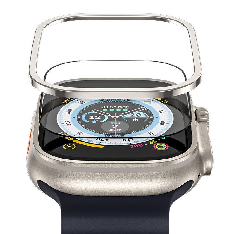 Сапфирено калено стъклено защитно покритие с титаниева рамка за Apple Watch Ultra, Ultra 2 49мм - Blueo Sapphire And Titanium Alloy Tempered Glass Protector Kit (титан-прозрачен)