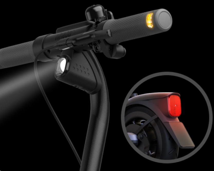 Dual Brake System The combination of the front electronic brake and the rear mechanical drum brake (controlled by one lever) will ensure an efficient and reliable brake. | Full Lighting System The E2 E II is designed with a 2.1W front light, bringing you better dark visibility to up to 13.5-meter distance. The built-in turn indicators and rear brake light make sure you are noticeable to avoid collisions. |