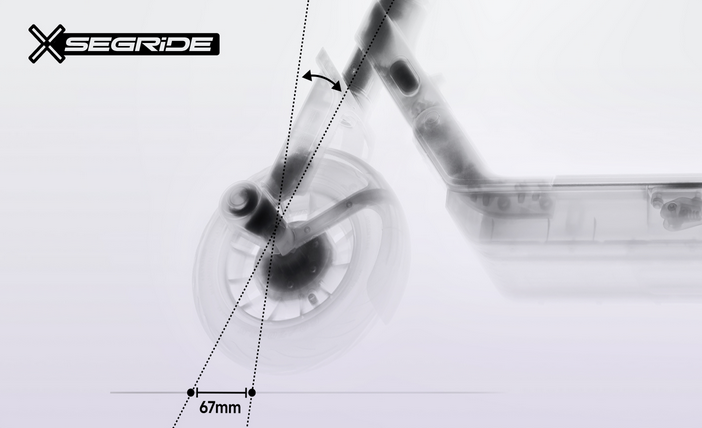 ![]() | Disturbance Resistance Equipped with an 67 mm large trailing distance combined with a precisely tuned stem angle and steering damping, enhancing the disturbance resistance, keeping the stable riding from unpredictable conditions.