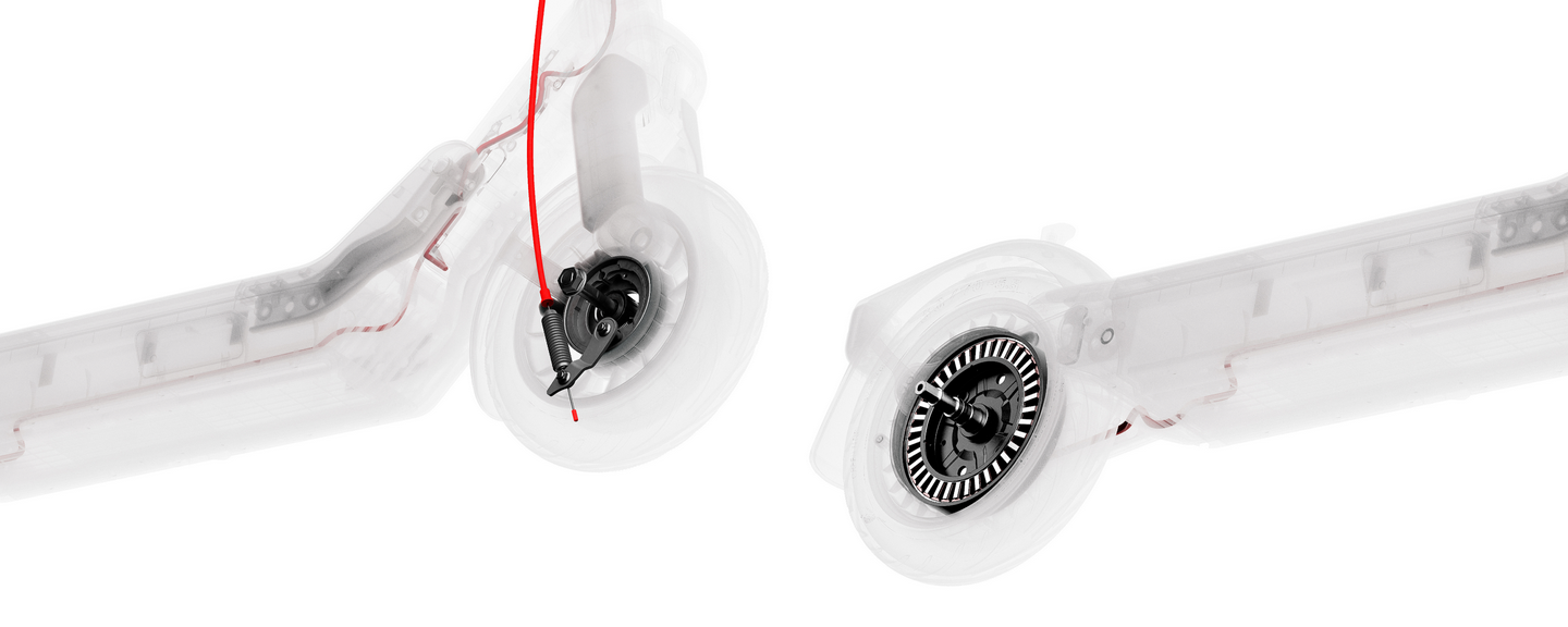 Steady braking for a safer ride with a front drum brake and rear electronic brakes.