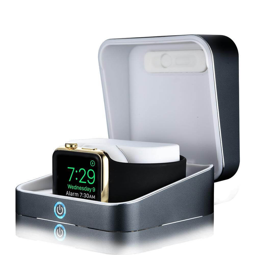 WatchBox се предлага с разглобяема, сертифицирана, магнитна мини док станция за Apple Watch, която можете да извадите от кутията и да продължите да използвате