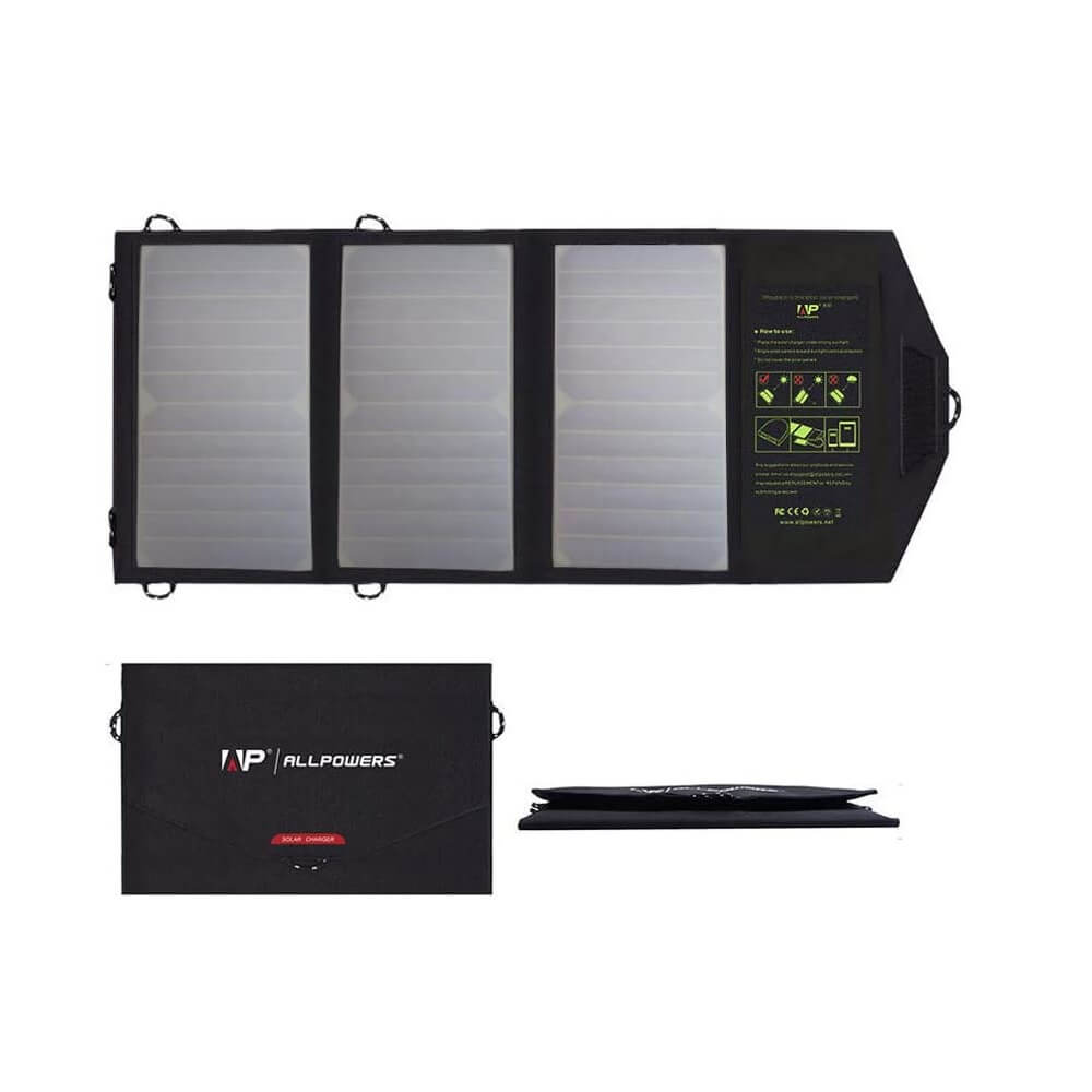 Allpowers SP5V21W е ефективно слънчево зарядно устройство. Идеално за зареждане на мобилен телефон в ситуация, в която нямате захранване. Съдържа мощни слънчеви панели SUNPOWER® (коефициент на преобразуване: 22% - 25%)