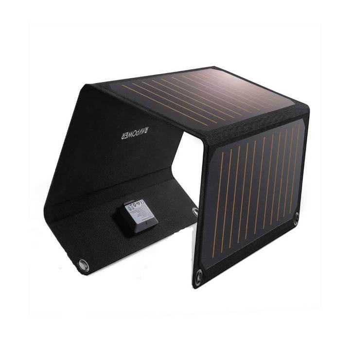 В комплекта: - 1 x RAVPower Solar Charger 21W - 4 x карабинера - 2 х microUSB кабели