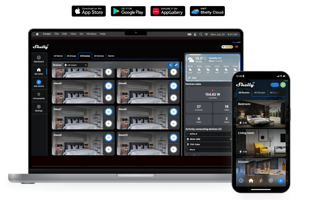 Easily manage your smart home devices by creating customized actions that suit your preferences. You can control an entire room with a simple button click, using four distinct push combinations! Assign these combinations to a variety of actions, from turning off lights to adjusting blinds or controlling the garage door. Use the Shelly Smart Control app to pre-set desired actions let your imagination flow with no limits.