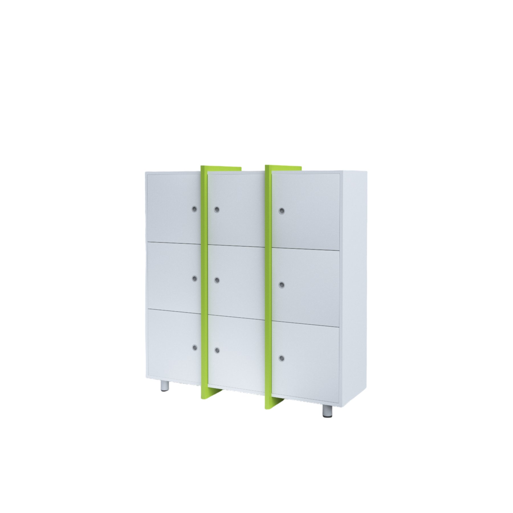 Шкаф RFG Etto, с 9 отделения, 1260 х 400 х 1310 mm, ПДЧ, бял и зелен