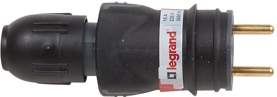 Щепсел френски черен 2P+Т 16A ІР44 250V гумиран с щуцер Legrand /10бр/