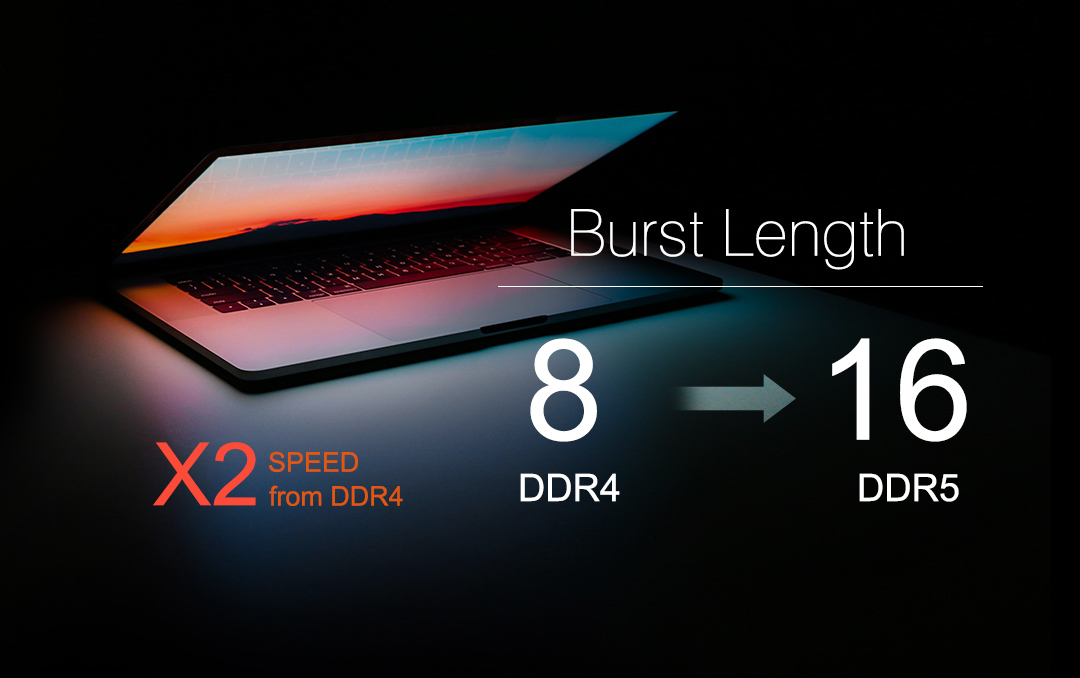 That's not all that's doubled – the minimum burst length on this DDR5 SODIMM module is up to 16, up from 8 for DDR4. This improves data bus efficiency, providing twice the data on the bus, and consequently reduces the number of reads/writes to access the same cache data line.