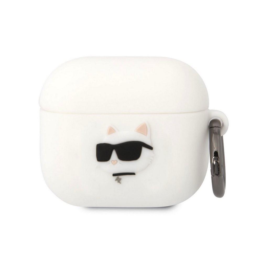 Силиконов калъф с карабинер за Apple AirPods 3 - Karl Lagerfeld AirPods 3 3D Logo NFT Choupette Head Silicone Case (бял)