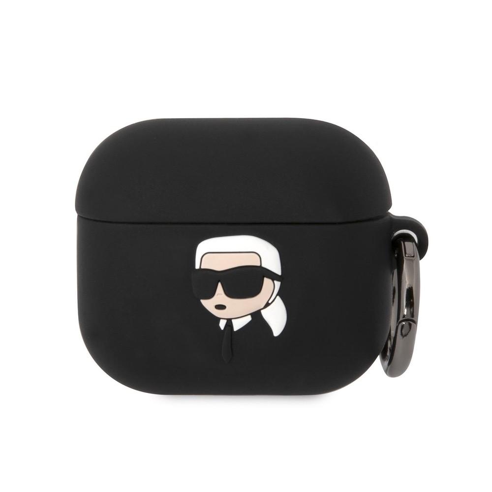 Силиконов калъф с карабинер за Apple AirPods 3 - Karl Lagerfeld AirPods 3 3D Logo NFT Karl Head Silicone Case (черен)