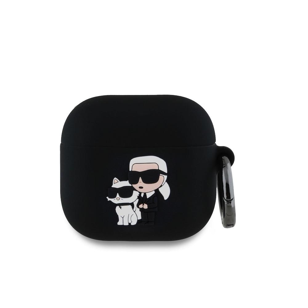 Силиконов калъф с карабинер за Apple AirPods 4 - Karl Lagerfeld 3D Logo NFT Karl and Choupette Silicone Case (черен)