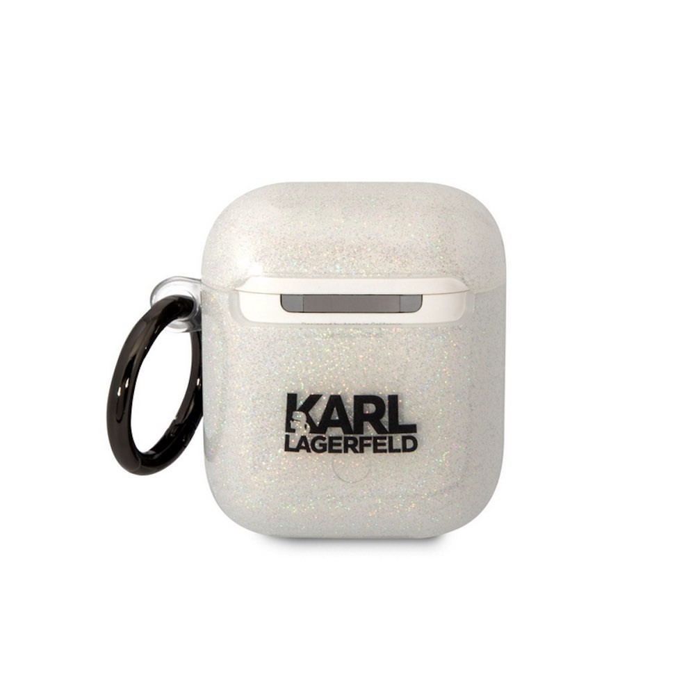 Силиконов калъф с карабинер за Apple AirPods и Apple AirPods 2 - Karl Lagerfeld AirPods Glitter 3D Logo NFT Karl and Choupette Silicone Case (бял)