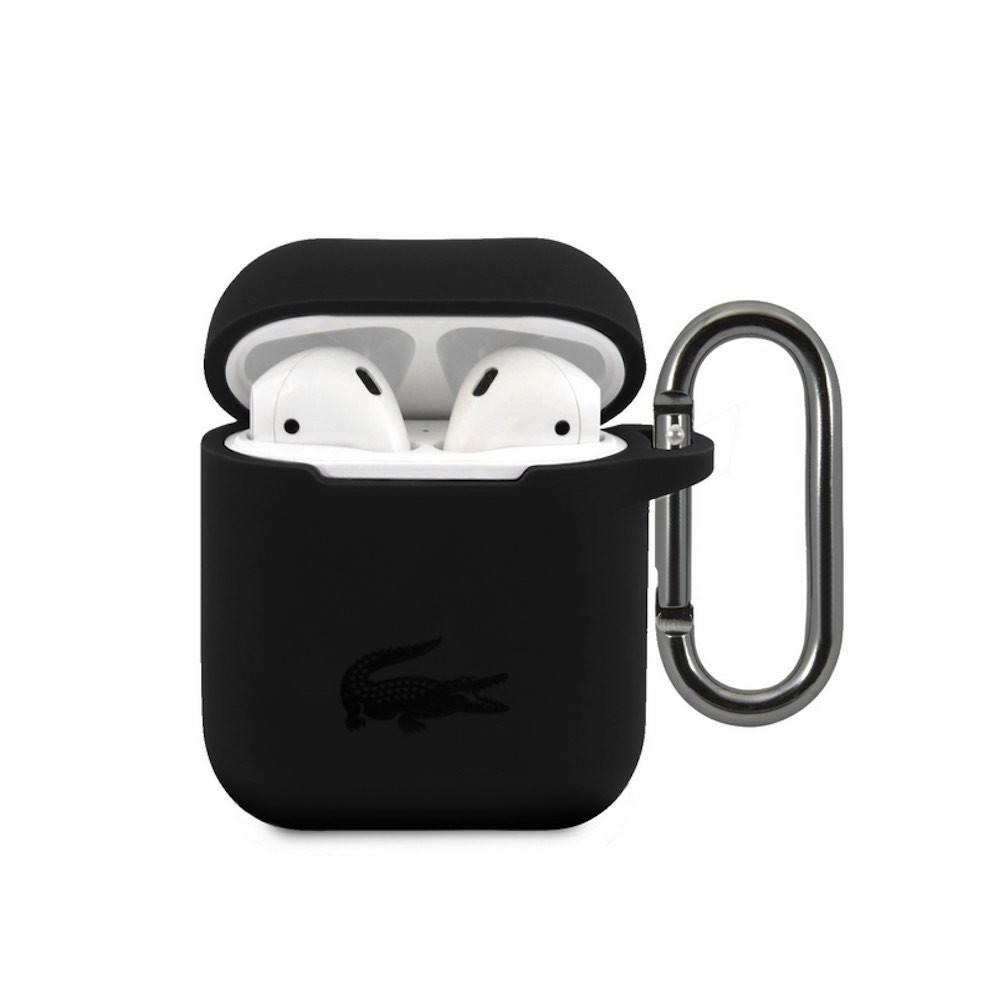 Силиконов калъф с карабинер за Apple AirPods и Apple AirPods 2 - Lacoste AirPods Liquid Silicone Glossy Printing Logo Case (черен)