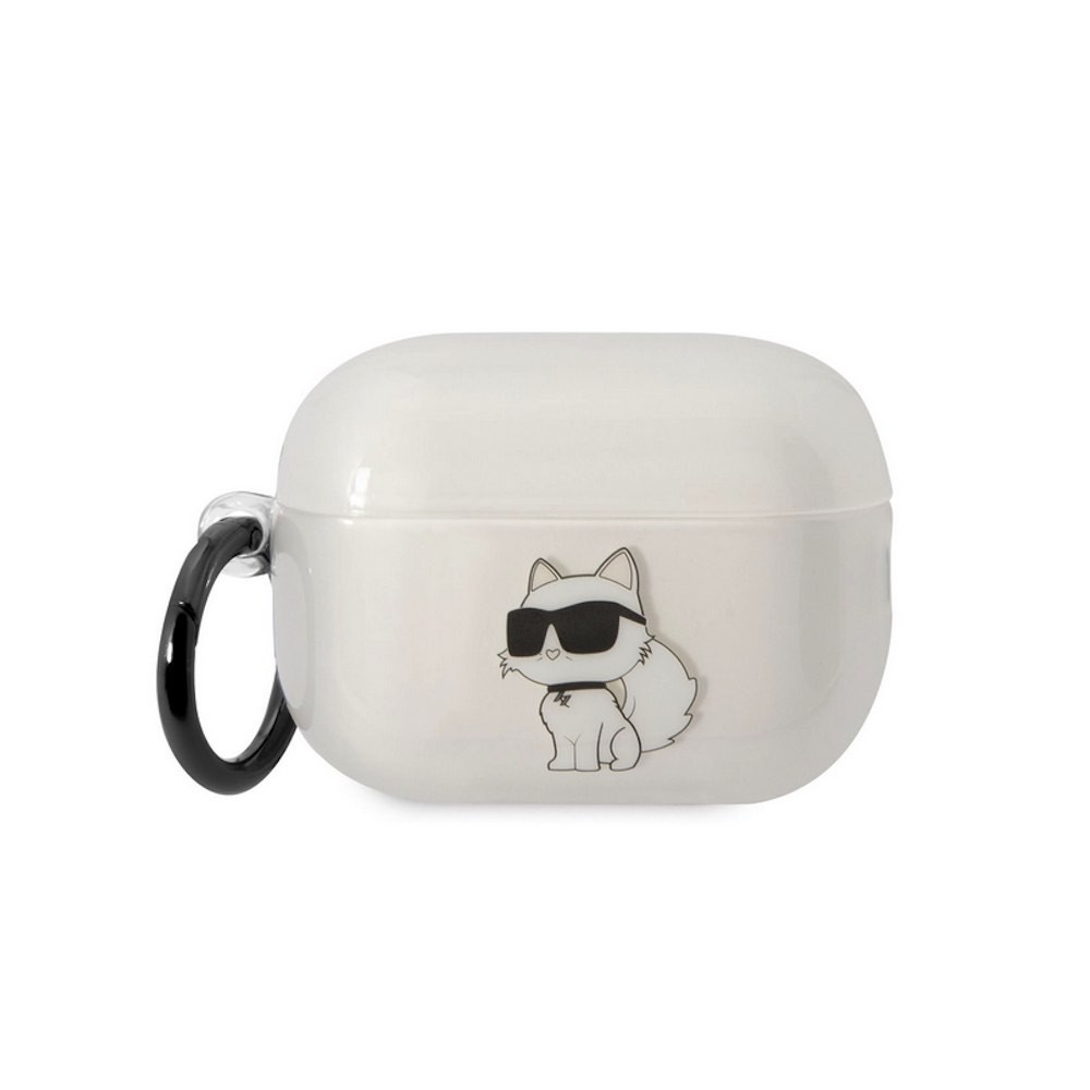 Силиконов калъф с карабинер за Apple AirPods Pro 2 - Karl Lagerfeld AirPods Pro 2 3D Logo NFT Choupette Silicone Case (бял)