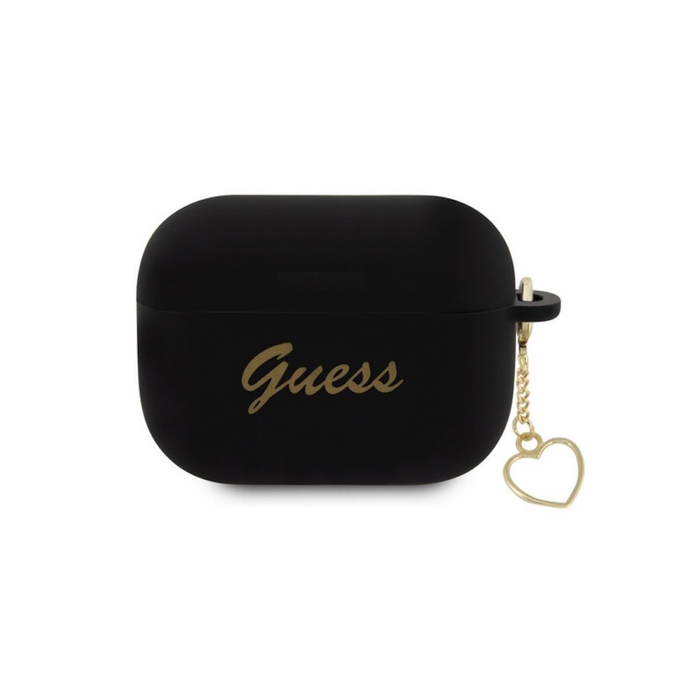 Силиконов калъф с висулка за Apple AirPods Pro 2 - Guess AirPods Pro 2 4G Charms Heart Silicone Case (черен)