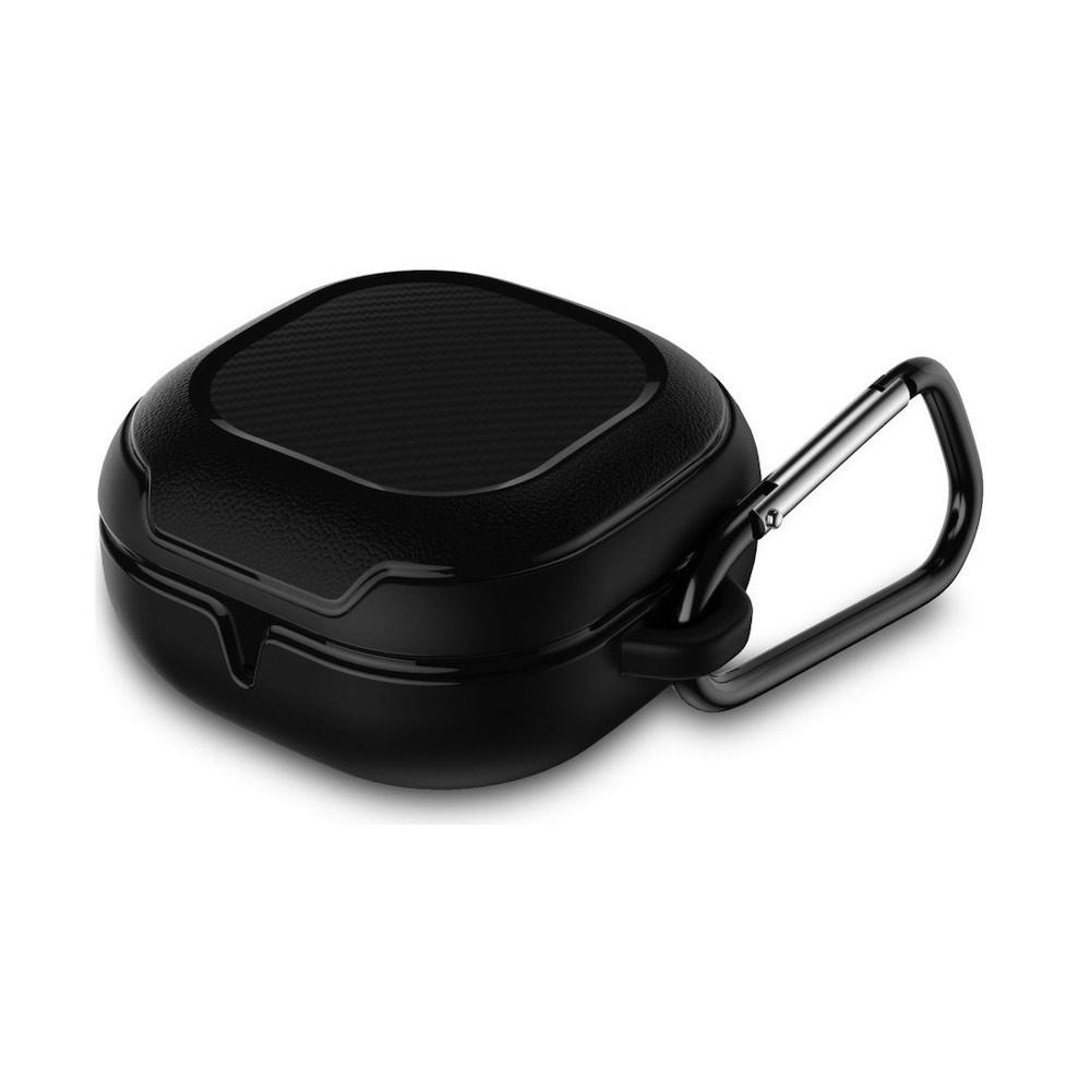 Силиконов (TPU) калъф с карабинер за Samsung Galaxy Buds 2, Galaxy Buds Live, Galaxy Buds Pro - Tech-Protect Rough Carbon TPU Case (черен)