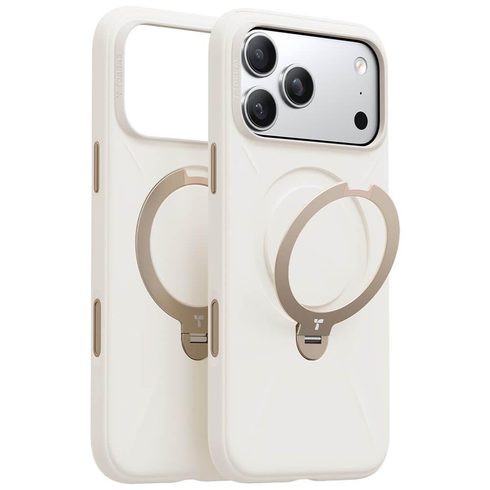 Силиконов (TPU) калъф с вградена поставка и MagSafe за iPhone 17 Pro - Torras QPRO Silicone Series (бял)