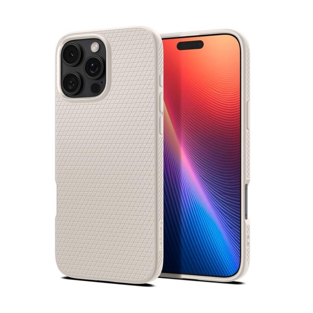 Силиконов (TPU) калъф с висока степен на защита за iPhone 16 Pro - Spigen Liquid Air Case (бежов)