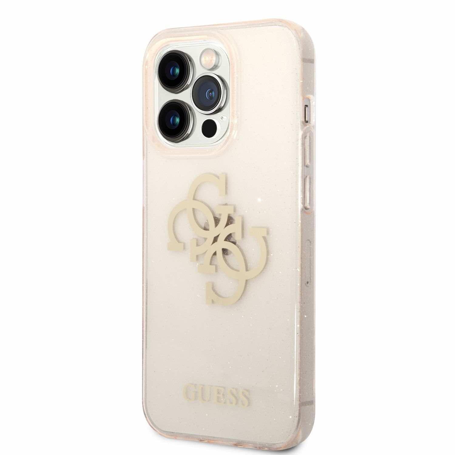 Силиконов (TPU) калъф за iPhone 14 Pro (златист)  - Guess Big 4G Full Glitter Case