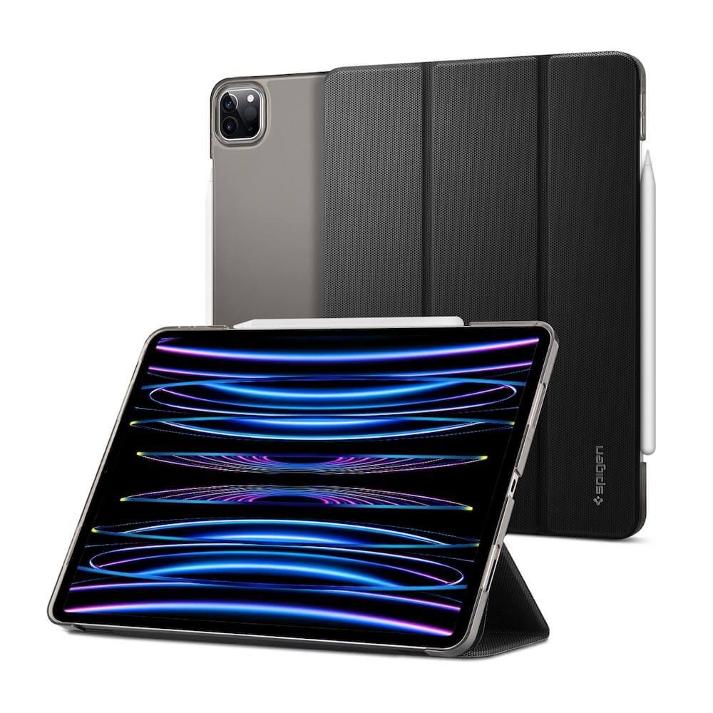 Силиконов (TPU) кейс с висока степен на защита и поставка за iPad Pro 11 M2 (2022), iPad Pro 11 M1 (2021) - Spigen Liquid Air Folio Case (черен)
