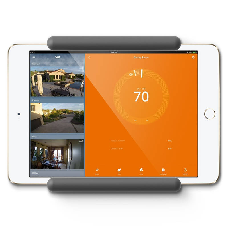 Elago Home Hub Mount представлява силиконова поставка, съставена от две отделни части, които се прикрепят към стената чрез видии, а самия iPad се поставя между тях