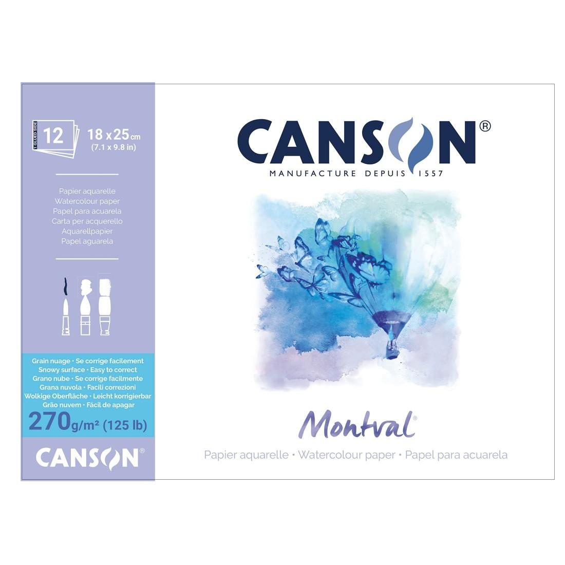 Скицник CANSON Montval, за акварелни бои, 180х250 мм, 270 г/кв.м, snowy grain повърхност, 12 л.