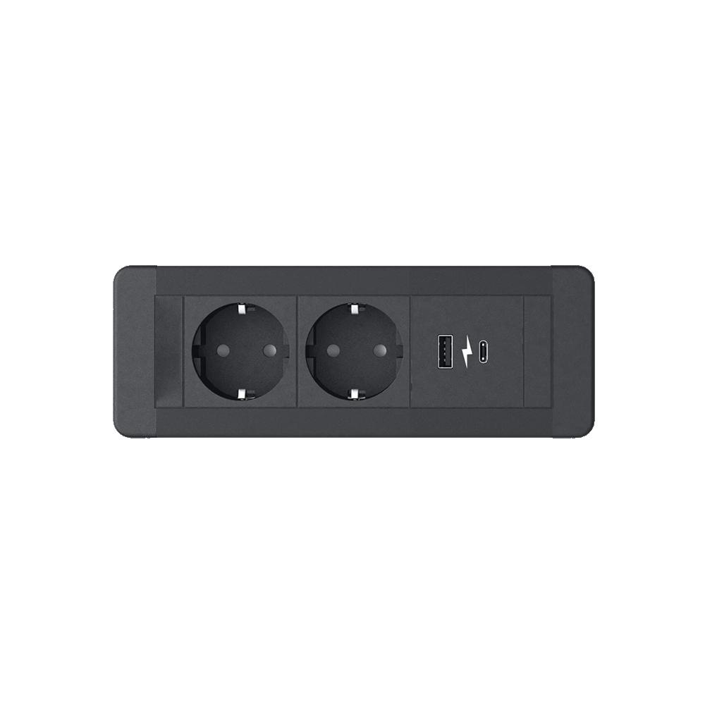SLIM FRAME 2хКОНТАКТ ШУКО+ 1хUSB A/C 20W, ЧЕРЕН