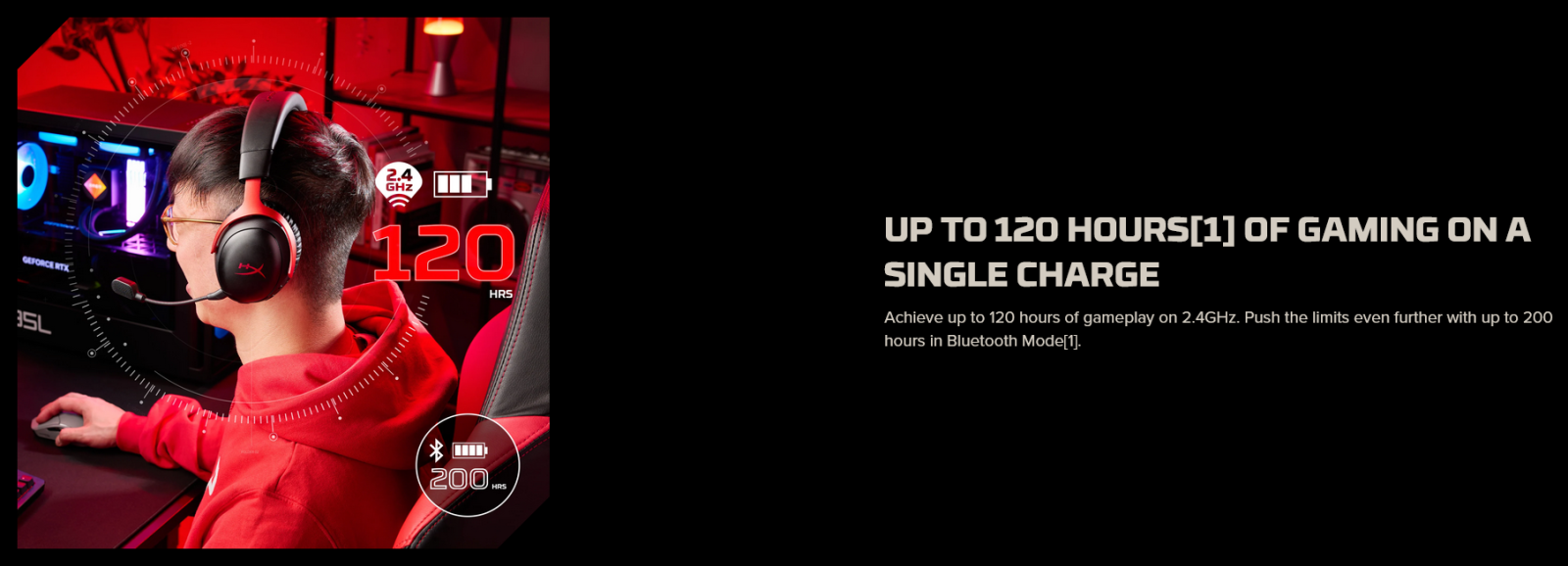 Achieve up to 120 hours of gameplay on 2.4GHz. Push the limits even further with up to 200 hours in Bluetooth Mode
