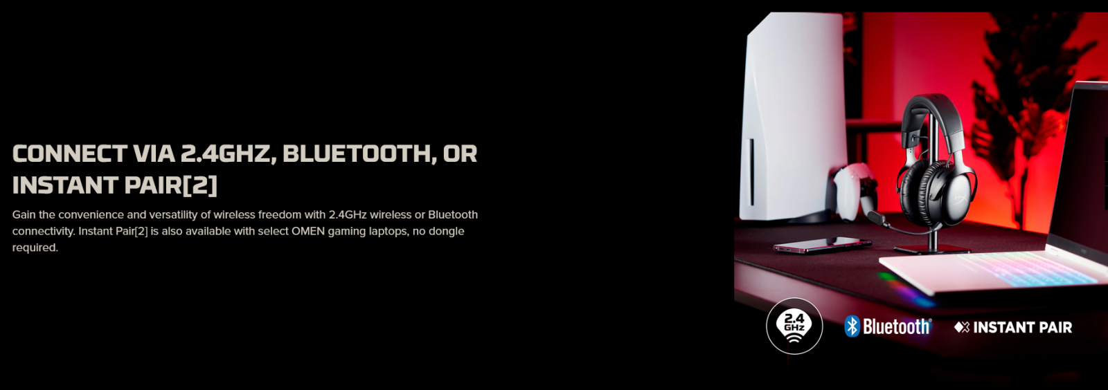 - 2.4GHz Wireless, Bluetooth, or Instant Pair[2]