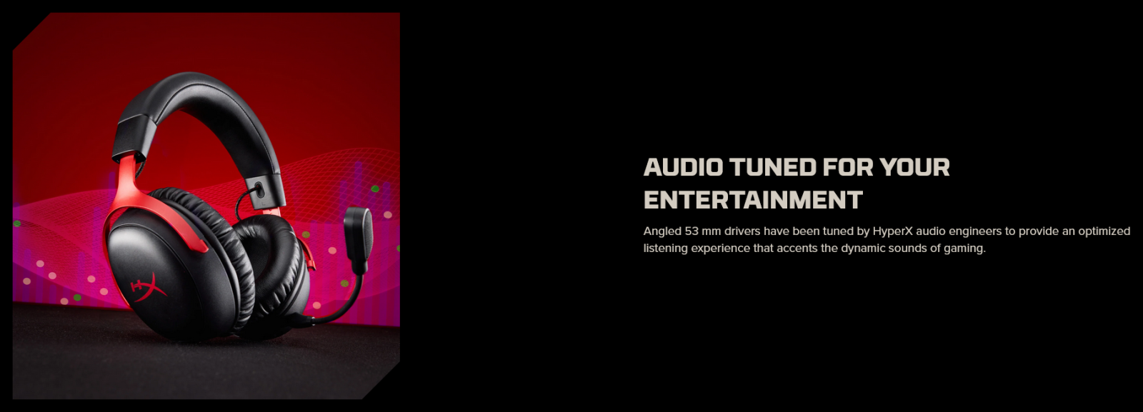 Angled 53 mm drivers have been tuned by HyperX audio engineers to provide an optimized listening experience that accents the dynamic sounds of gaming.