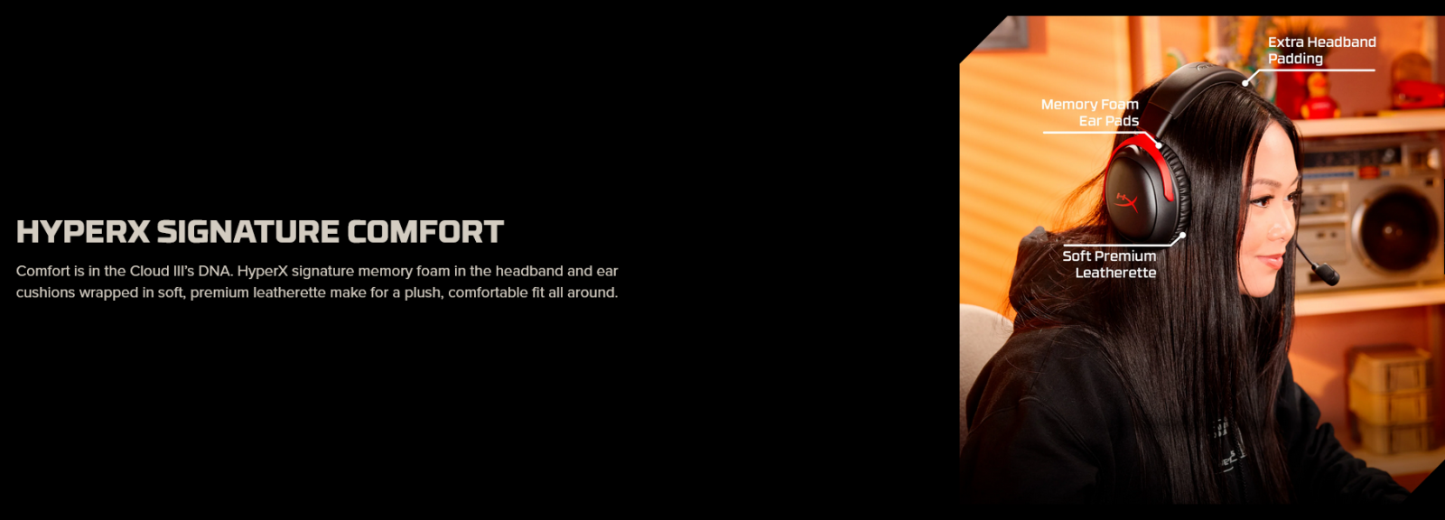 Comfort is in the Cloud III’s DNA. HyperX signature memory foam in the headband and ear cushions wrapped in soft, premium leatherette make for a plush, comfortable fit all around.