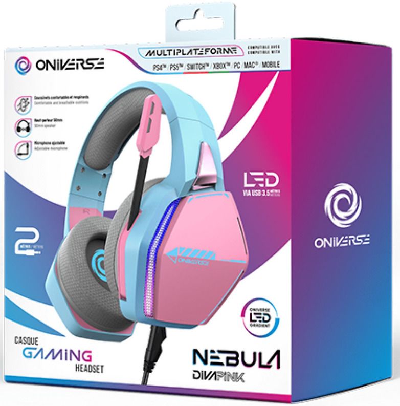 Влез в центъра на действието с Oniverse Nebula - Diva Pink гейминг слушалки, създадени за играчи, които търсят не просто звук, а истинско аудио изживяване. Независимо дали си в интензивна онлайн битка, потънал в света на любимата си история или просто слушаш музика, тези слушалки ще ти осигурят качествен и мощен звук, удобство при продължително използване и атрактивен LED дизайн, който подчертава твоя гейминг стил.