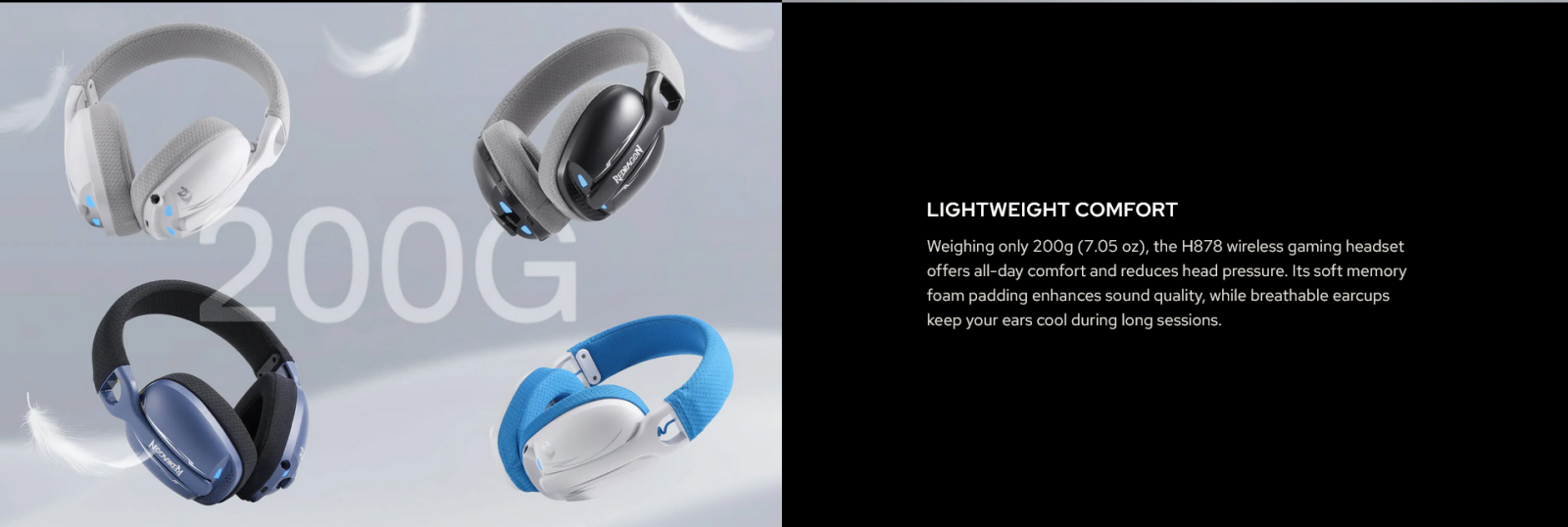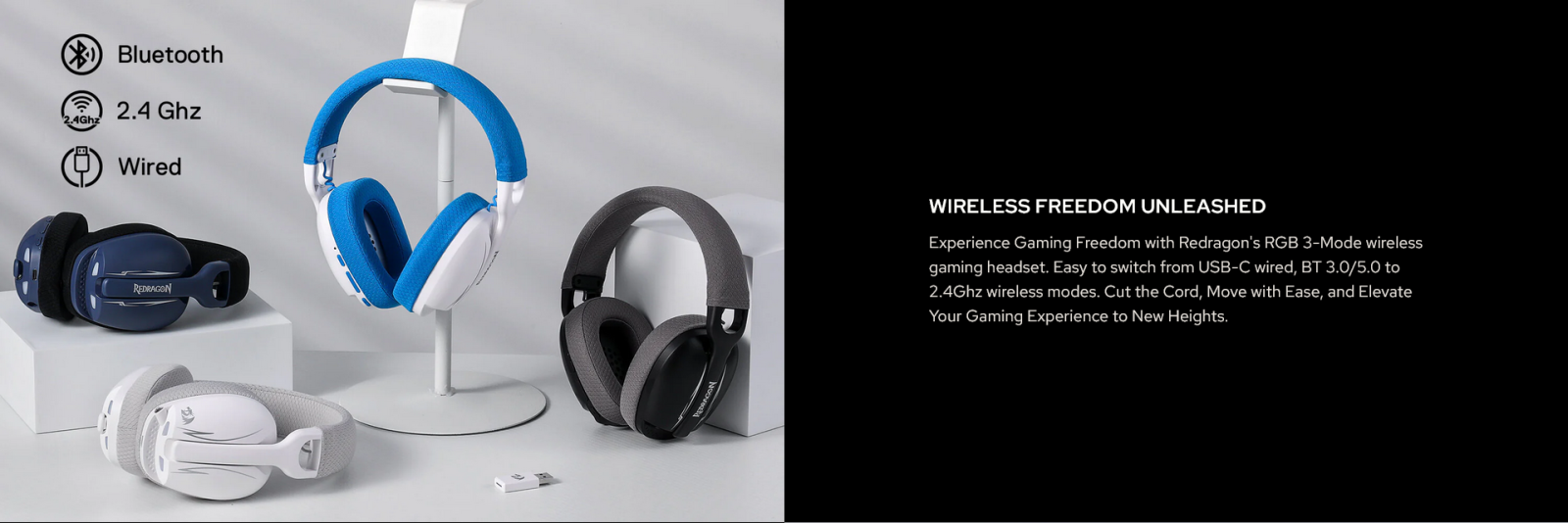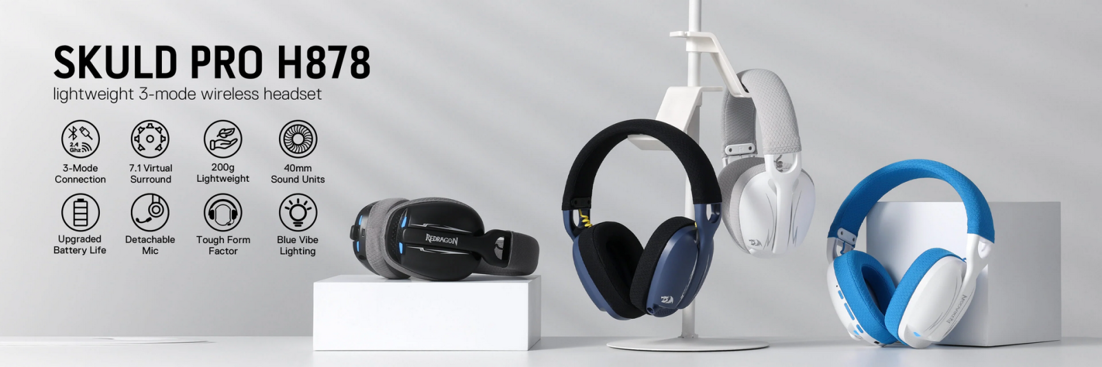 Redragon Skuld Pro H878BG — Lightweight 3-Mode Wireless Gaming Headset
