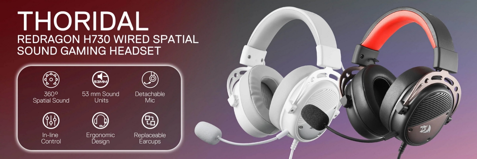 The Thoridal H730 packs everything a serious gamer needs into one precision-engineered wired headset. With 360° spatial sound, 53mm sound units, a detachable noise-cancelling microphone, ergonomic design, in-line controls, and replaceable earcups — this is the headset built to take your game to the next level.