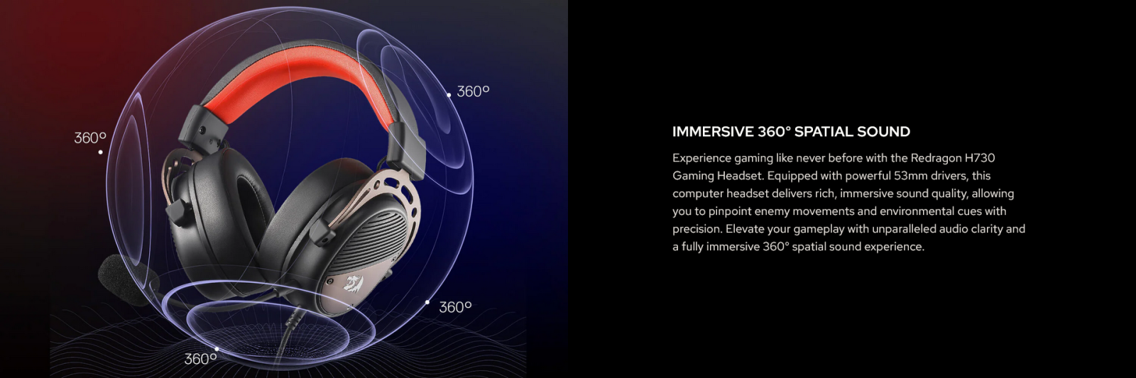 Experience gaming like never before. The Thoridal H730 is equipped with powerful 53mm drivers that deliver rich, immersive sound quality, allowing you to pinpoint enemy movements and environmental cues with precision. Elevate your gameplay with unparalleled audio clarity and a fully immersive 360° spatial sound experience that surrounds you from every direction.