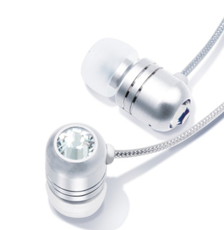 В комплекта: слушалки с елементи на Сваровски, 4ри комплекта различни размери сликонови тапи за уши