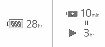 До 28 часа игра С до 28 часа непрекъснато време за възпроизвеждане, можете да разчитате на INZONE H5 да издържи толкова дълго, колкото ви е необходимо. A с 3 часа време за игра от само 10 минути зареждане, можете да сте готови веднага щом се върнете от почивка. | ![]() |