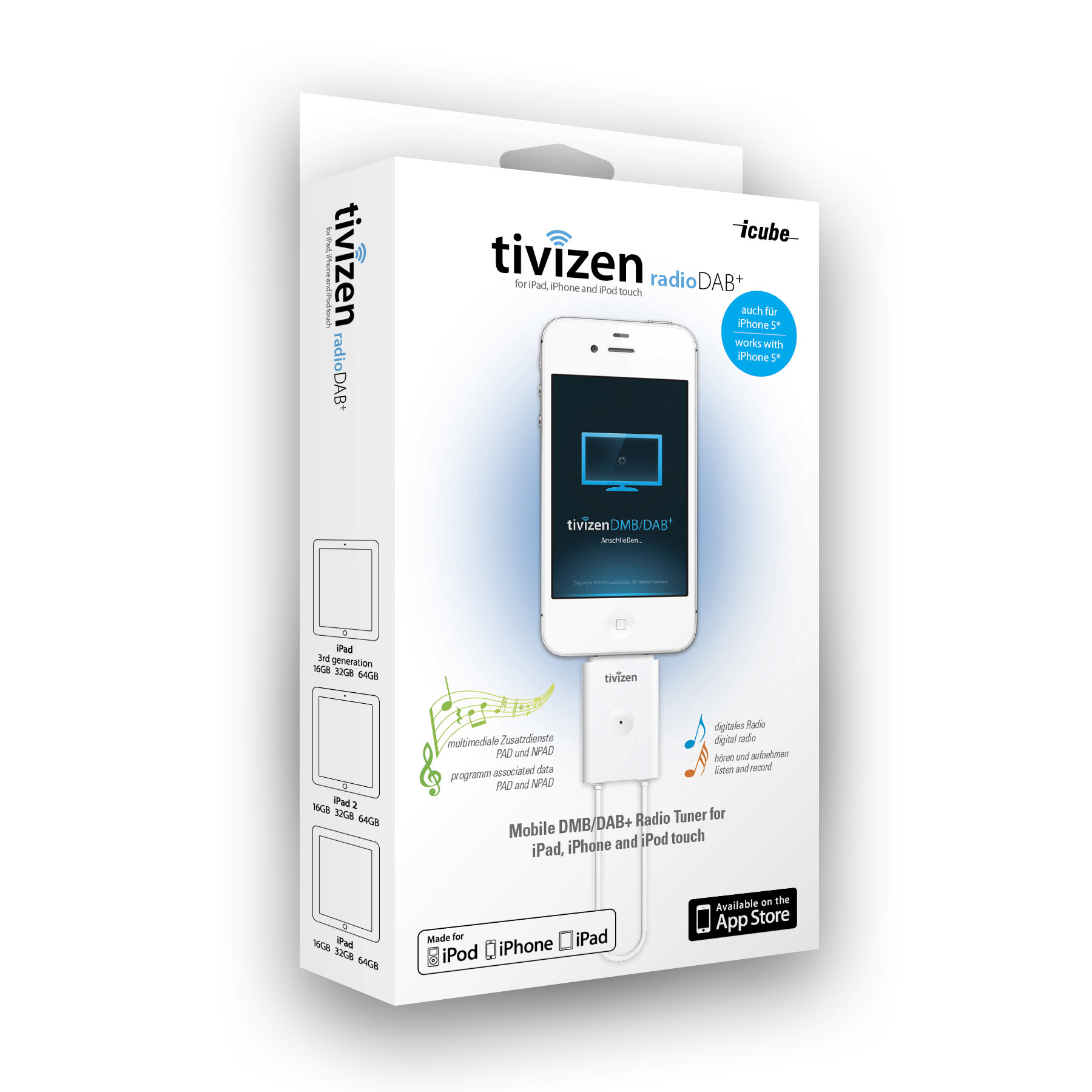 Внимание: Радио тунерът работи ДИРЕКТНО към iOS устройствата, които имат 30-пинов вход. Към тях спадат: iPhone 4S, iPhone 4, iPhone 3GS, iPhone 3G, iPhone 2G, iPad 3, iPad 2, iPad 1, iPod Touch 4, iPod Touch 3, iPod Touch 2, iPod Touch 1