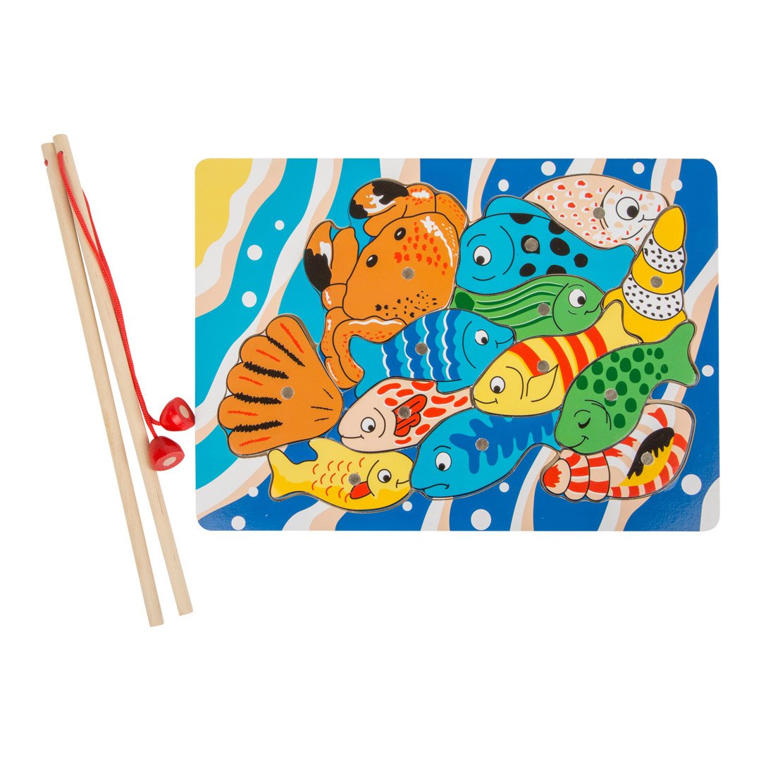 • Забавна дървена игра, с която децата ловят рибки с магнитна въдица.