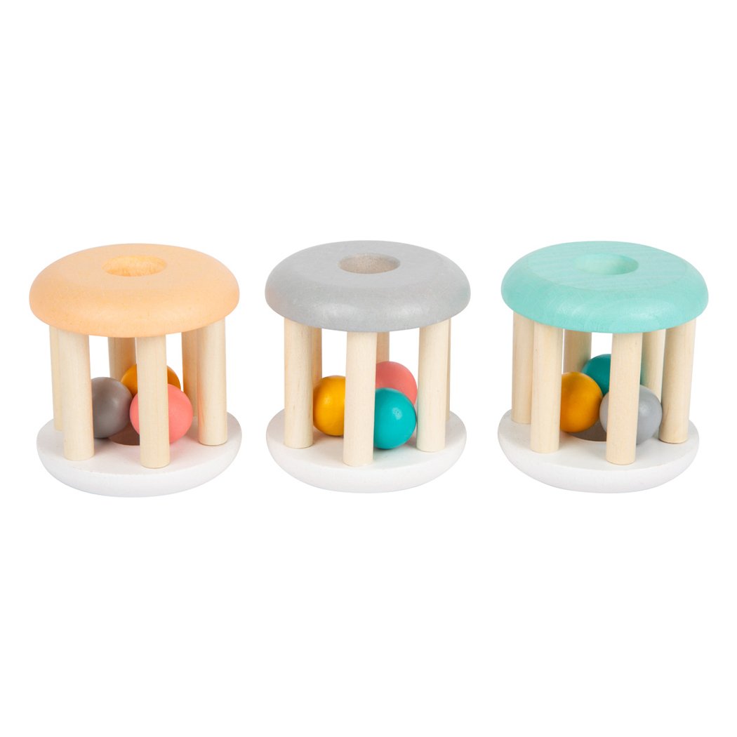 • Откъде идва това тракане? Тази дървена бебешка дрънкалка в пастелни цветове привлича вниманието на малкия изследовател.